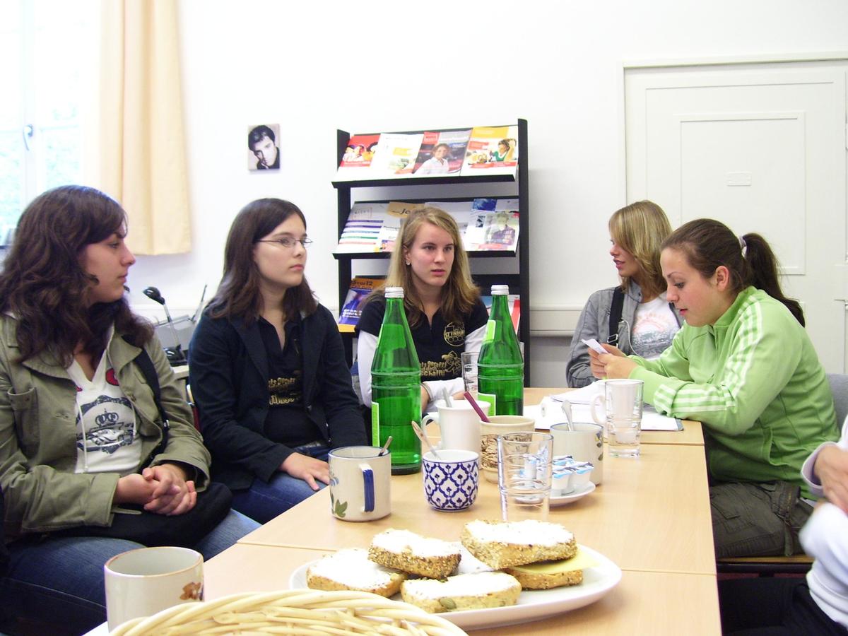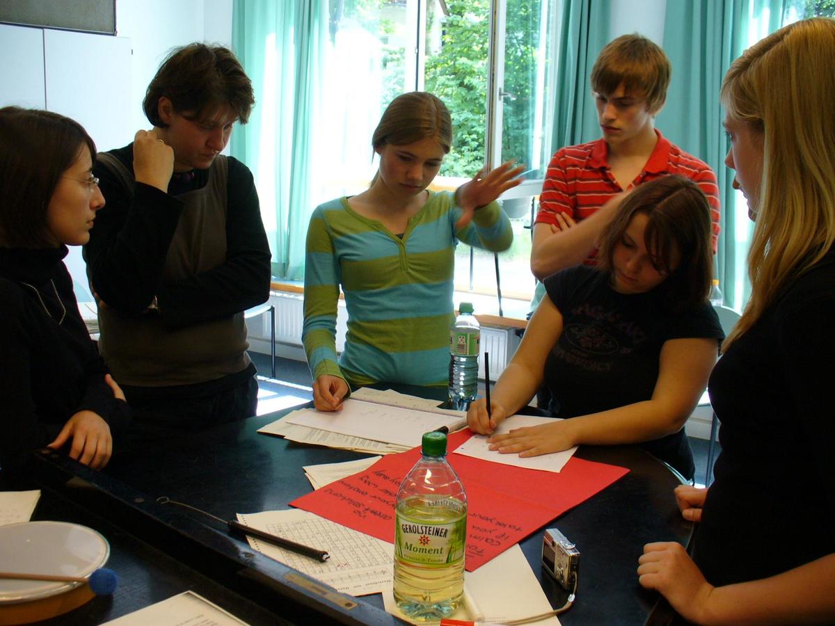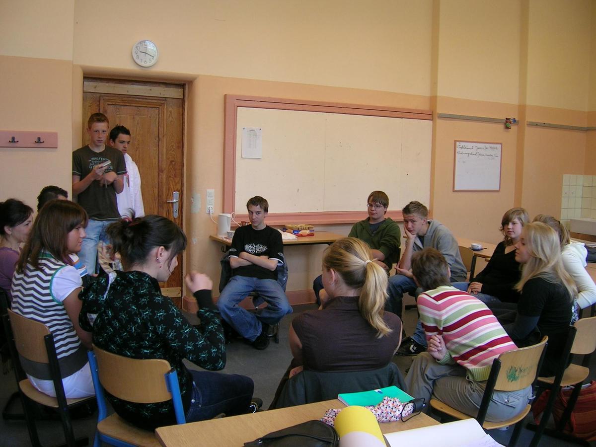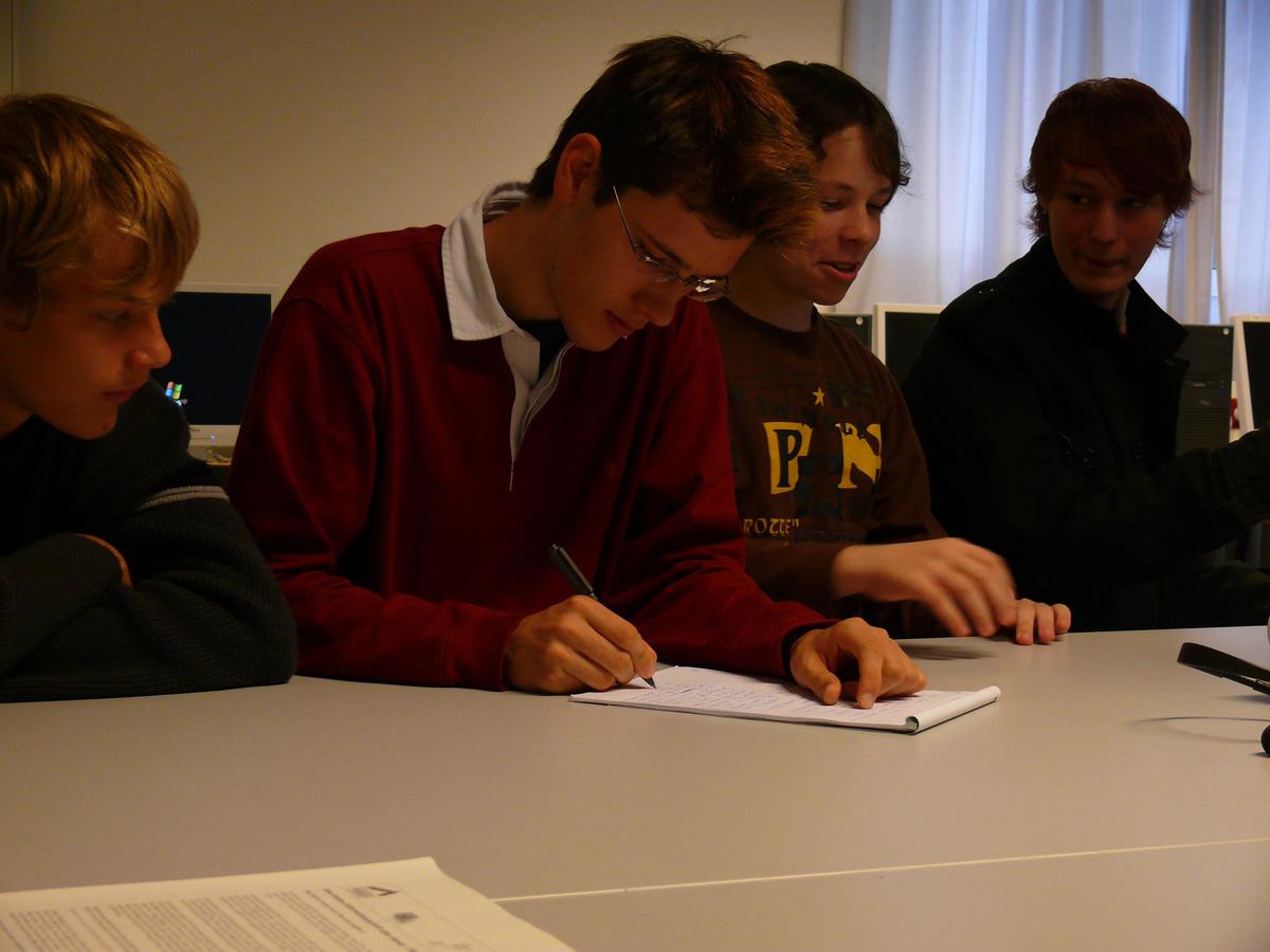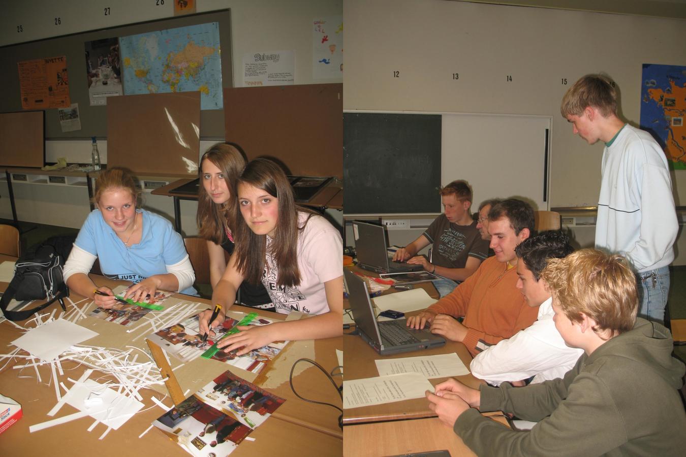Am Donnerstag trafen wir uns um 8 Uhr um zu besprechen welche Teams welche Workshops fotografieren sollten. Dann zogen wir los. Erst wurde höflich gefragt und dann eifrig geknipst. Etwas später wurden die besten Fotos am Laptop ausgewählt und zum Copyshop gebracht. Die gedruckten Bilder wurden in Team arbeit ausgeschnitten und aufgeklebt. Kleine Texte zur Erklärung wurden ebenfalls geschrieben. Auf Plakaten in Rahmen kann man sie in im Flur im Sekretariat anschauen. Außerdem wurden die Fotos ausgewählt, die man nun hier im Internet anschauen kann. Zu jeder Gruppe gibt es auf dieser Seite 2 Bilder.