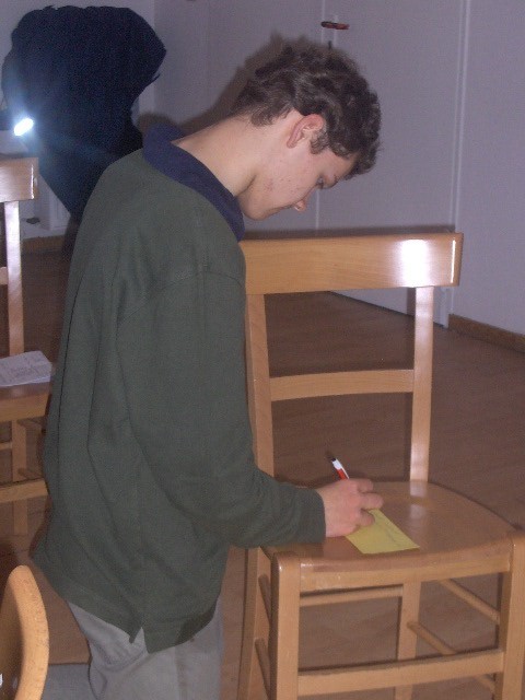 Dort trafen wir die Runde, die aus nur 6 Schülern und 3 Leitern bestand, beim ersten Kennernlernspiel, ein typisches Spiel: Einer stellt sich in die Mitte und nennt eine Eigenschaft oder Vorliebe und alle, auf die das zutrifft, müssen den Platz wechseln.